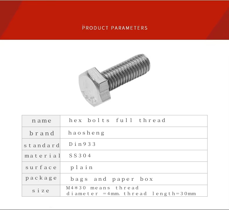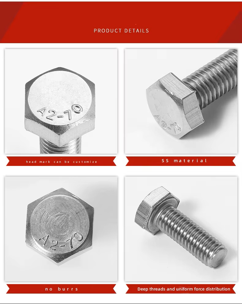 📦 Product Description Engineered for strength and durability, our DIN933 Grade 10.9 stainless steel hex head bolts are ideal for structural and industrial applications. Each bolt is precisely manufactured to international standards, ensuring reliable fastening in construction, automotive, and mechanical settings. 🔩 Material Options: Stainless Steel / Carbon Steel🎯 Grade: 4.6 / 4.8 / 5.6 / 5.8 / 8.8 / 10.9 / 12.9📐 Standards: DIN, ASTM, ANSI, ISO, JIS, GB🛠️ Surface Finishes: Zinc (yellow, white, blue), Black Oxide, HDG, Geomet, Dacroment, Nickel-Plated🔧 Sizes Available: M2–M100 (custom CNC machining available)🚚 Lead Time: 30–60 days for custom orders📦 Packaging: Carton + Pallet…